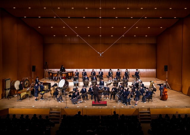di tutti 〜みんなのコンサート〜)に向けて取り組みます。その練習の際には、プロの音楽家の指導を受けて、研修を行う事にしています。この取り組みを通して、参加校の指導者・生徒の交流はもちろん技術的な面での刺激も互いに与え合っており、中学校バンドのレベルアップに果たしている役割は大きいものがあります。