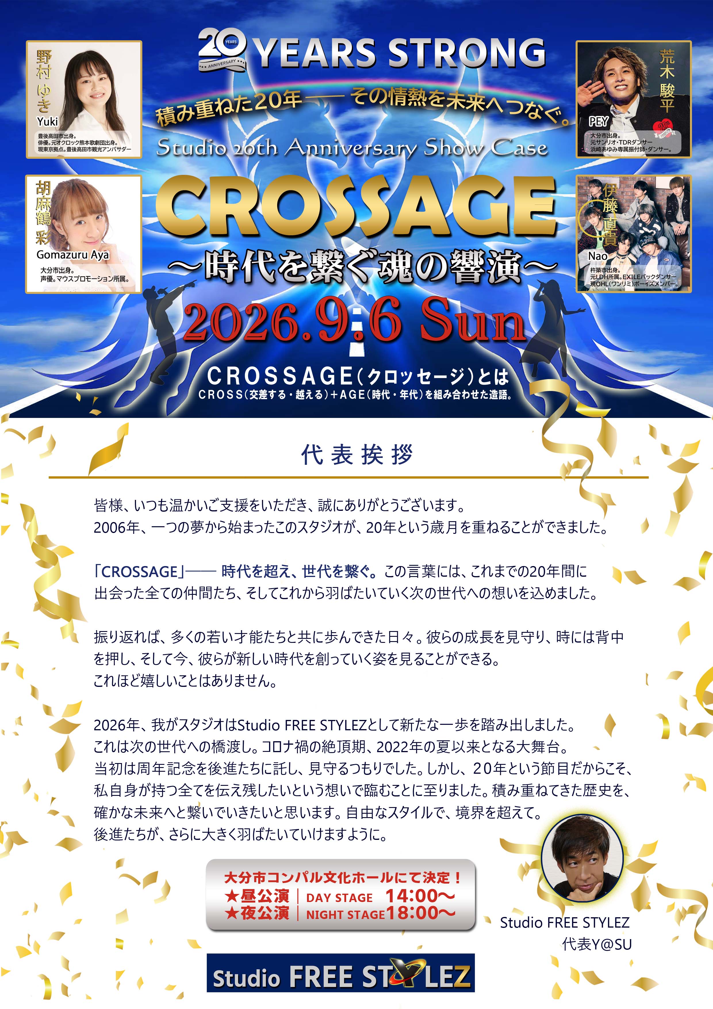 Studio 20th Anniversary Performance「CROSSAGE〜時代を繋ぐ、魂の響演〜」 |